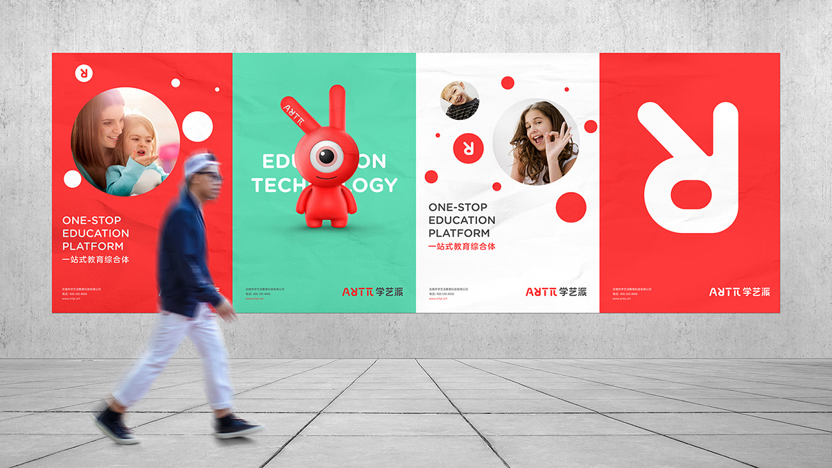 設(shè)計(jì)中我們以孩子喜歡的動物——兔子為視覺創(chuàng)造載體,把機(jī)靈、聆聽、思考、創(chuàng)作融入品牌標(biāo)識,簡單直白!