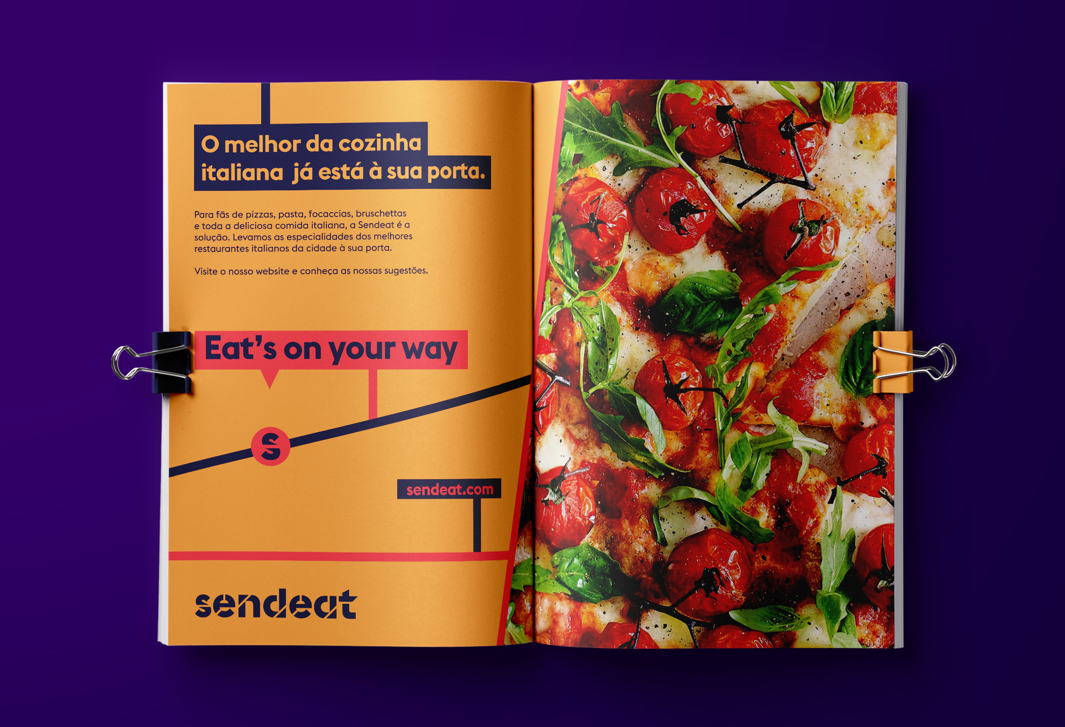感覺,并迎合不同的口味和選擇。我們還決定創(chuàng)建一個k品牌廣告語,以使用一個常用短語來最好地表達SendEAT的品牌承諾,并使之適應公司的主要服務現實:“隨您吃”。結果就是簡單而充滿活力的餐飲品牌VI形象設計,具有現代的外觀和清晰的信息:我們希望將最好的食物提供給最好的客戶-我們的客戶。我們從訂單經過的城市地圖上獲得了靈感。我們決定對單詞的小寫字母進行模版處理,就好像它們被命令所經過的街道所打斷以達到他們的命運一樣。就像公司的服務一樣,使用了大膽的顏色,以給人以變化和活力的感覺,并迎合不同的口味和選擇。
