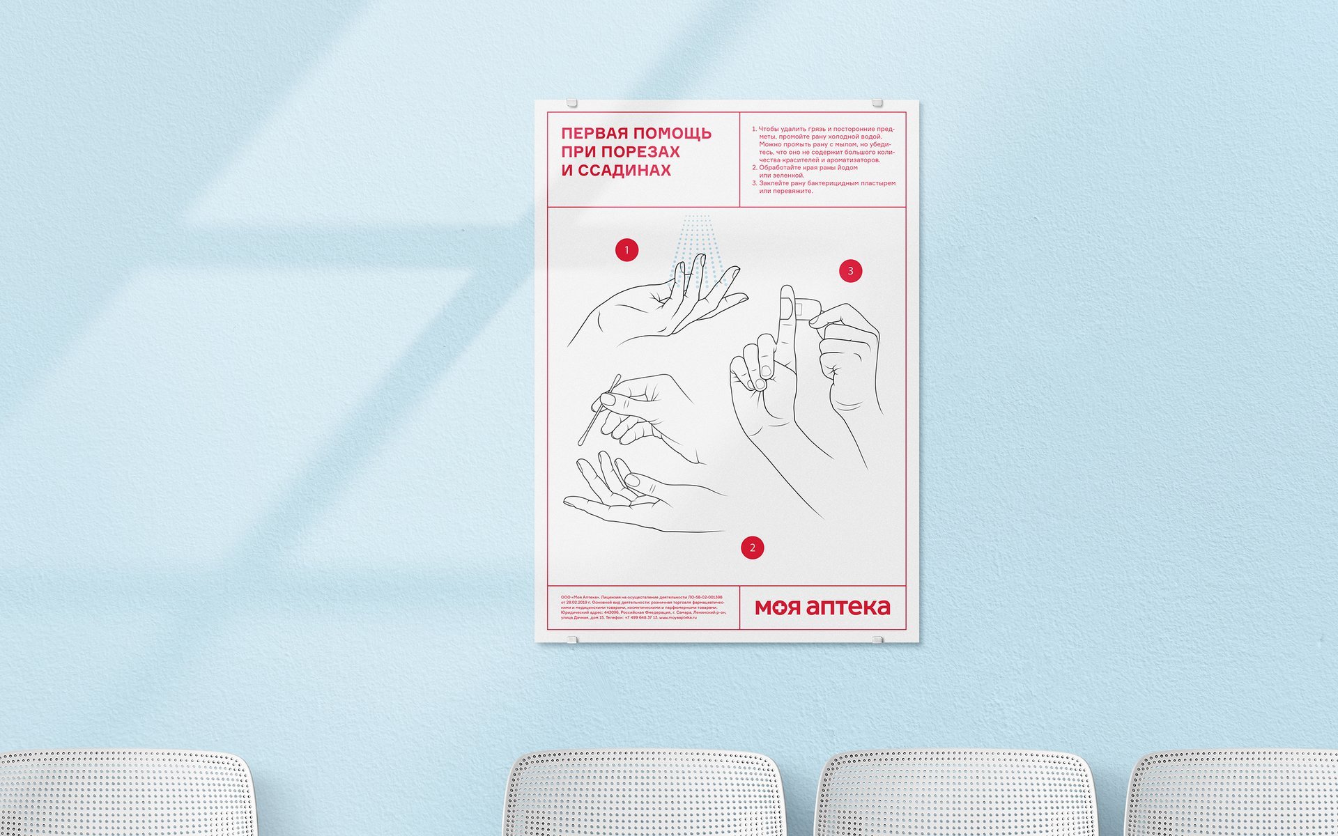 我們?cè)谒幏康膹V告宣傳中增加了社交定位。海報(bào)解釋了如何處理家庭常見傷害中的急救,小冊(cè)子描述了衛(wèi)生規(guī)定或如何預(yù)防各種疾病。因此,My Pharmacy都通過(guò)提供有用的信息來(lái)照顧客戶,同時(shí)又以不引人注目的方式提供商品。該鏈利用交叉促銷,將其廣告放置在分支機(jī)構(gòu)所在的診所的走廊中,并與醫(yī)療機(jī)構(gòu)中常見的其他類型的信息海報(bào)相鄰。這種廣告可以使藥房通過(guò)各種層次和溝通渠道吸引消費(fèi)者。