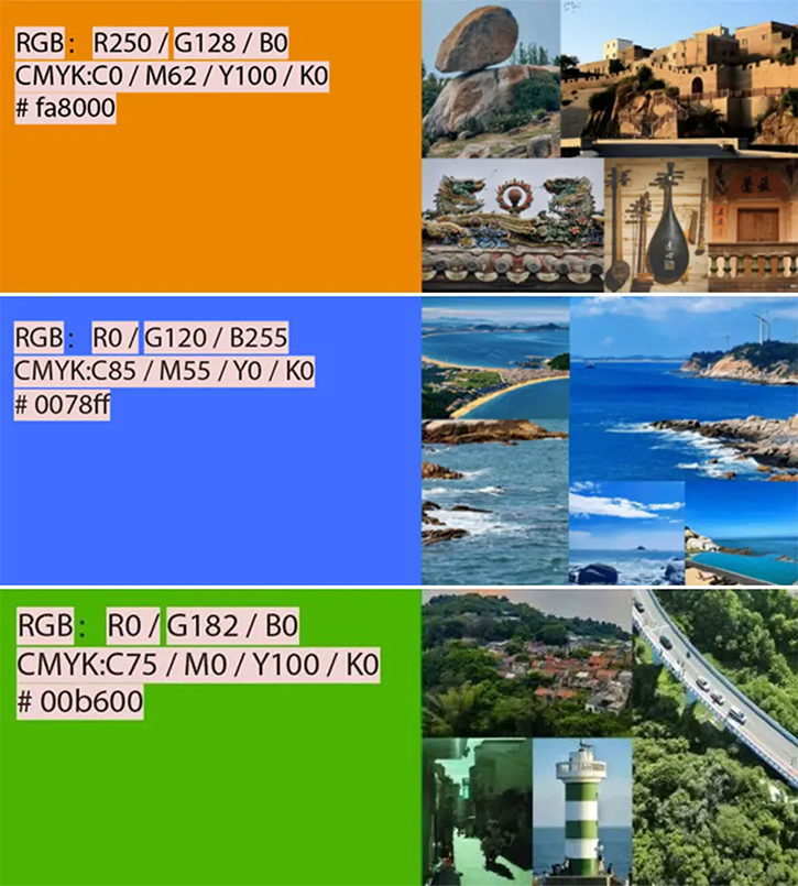 LOGO的色彩由橙色、藍色和綠色三色組成。橙色代表關(guān)帝文化。關(guān)帝文化在東山島具有深遠影響,象征著忠義、仁愛與守護。橙色代表熱情、活力與傳承,呼應關(guān)帝文化與當?shù)厝宋那閼训纳詈竦滋N。