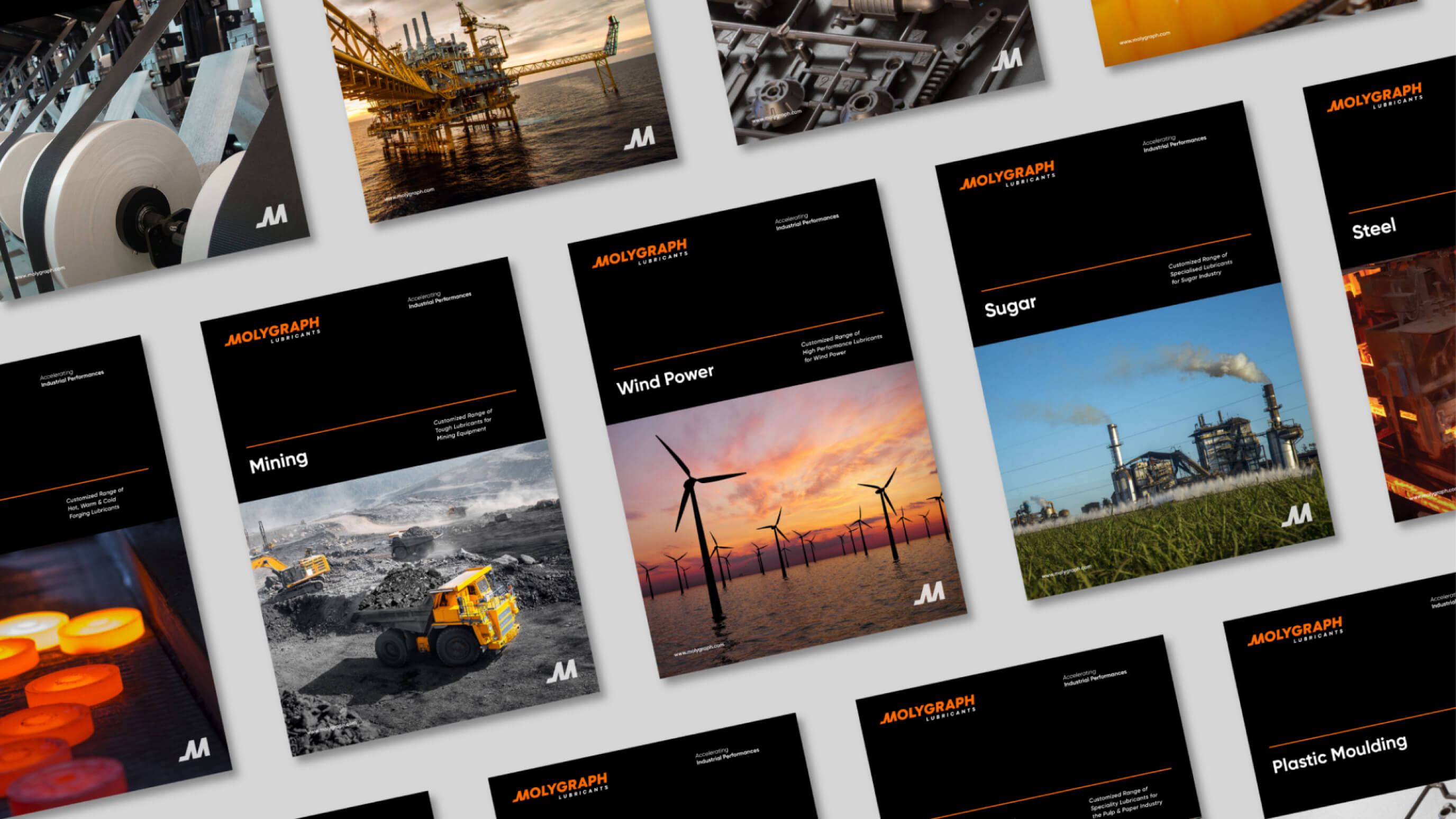 新品牌設(shè)計旨在顯得大膽、精致且簡潔,給人以動力和動感之感。字體系統(tǒng)的選擇旨在在實體和數(shù)字格式中保持清晰易讀。色彩調(diào)色板融入了Molygraph的傳統(tǒng),同時引入了一種現(xiàn)代而充滿活力的元素,在工業(yè)藍與灰的海洋中脫穎而出。
