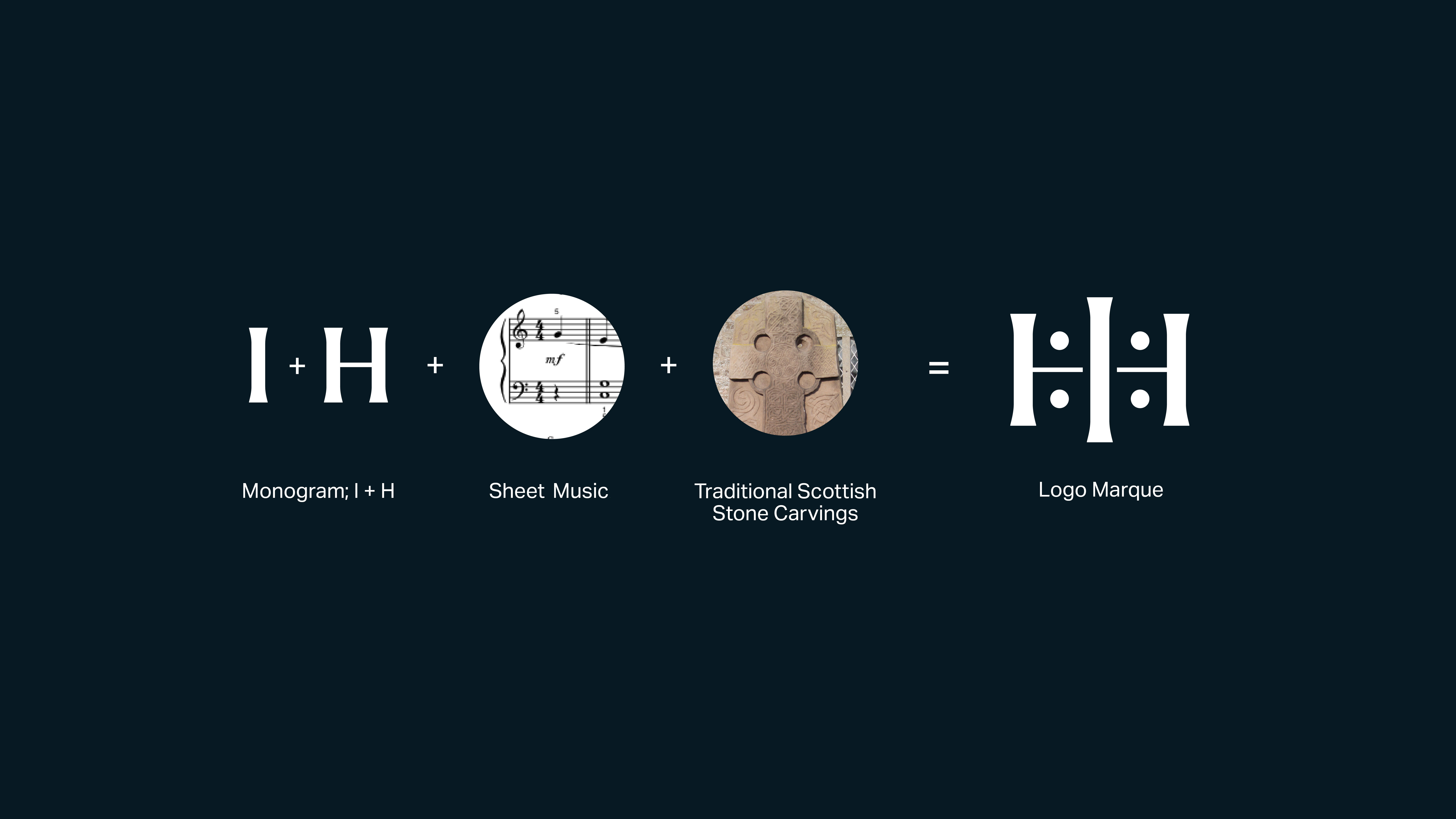 標(biāo)志設(shè)計(jì)中“IH”的字母標(biāo)記本身就從樂譜中汲取了影響,同時(shí)也從蘇格蘭古代石刻中汲取了靈感。