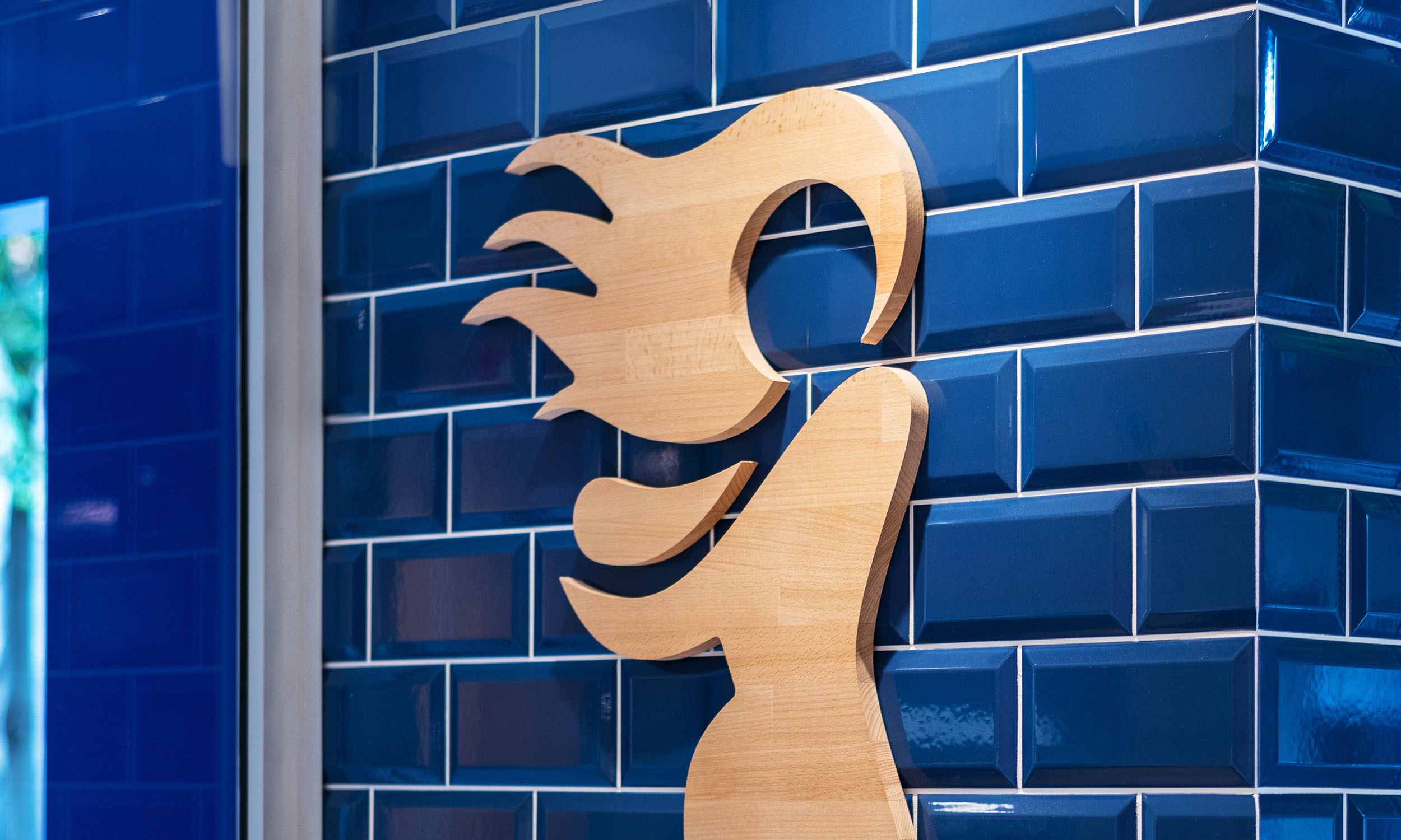 我們從品牌VI形象設(shè)計(jì)的演變開(kāi)始,賦予它更現(xiàn)代、更貼切的個(gè)性,同時(shí)又不拋棄使其成名的形象。引入了一種新的色碼,通過(guò)添加木材等自然色調(diào)來(lái)補(bǔ)充企業(yè)紅藍(lán)的存在。字體設(shè)計(jì)更加生動(dòng),品牌的標(biāo)志也風(fēng)格化了。美人魚(yú)是基于象形圖的合成,同時(shí)用曲線將形狀和姿勢(shì)自然化,以增加其有機(jī)吸引力。新品牌更加復(fù)雜,消除了超市和迄今為止定義它的產(chǎn)品的內(nèi)涵。