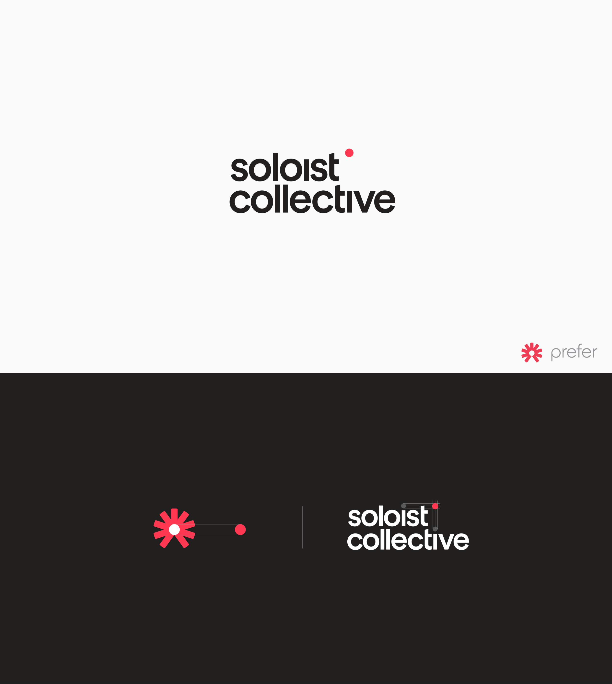 “獨奏者集體”是一個致力于幫助彼此追求成功的獨奏事業(yè)的社區(qū)。標志設計將“Soloist”置于 Prefer 徽標的中心,并使用代表“soloist”的孤獨點重新設計了這個想法。 該品牌VI形象設計利用圓點的這種視覺元素來講述獨奏者與其他獨奏者社區(qū)的故事。在主標志不起作用的時候,為補充品牌而創(chuàng)建的圓形輔助標志講述了圍繞獨奏者中間的“集體”的故事,強化了他不必獨自做這件事的想法。