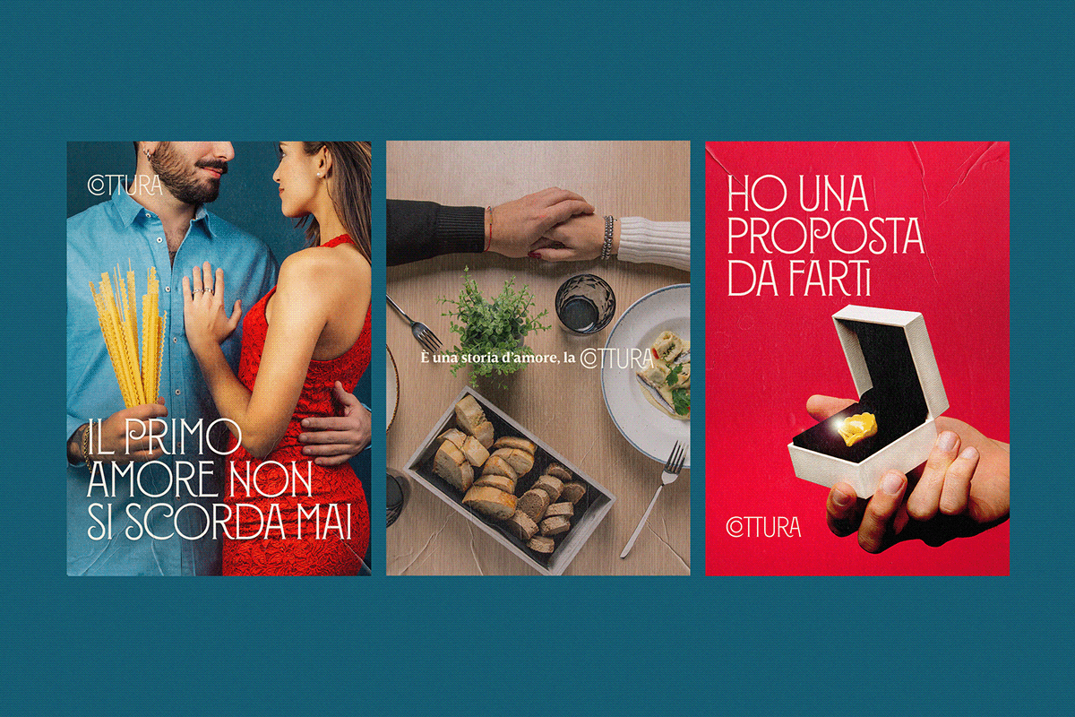 Cottura 是一家餐廳和雞尾酒吧,其標志設(shè)計概念基于意大利的兩大基石:意大利面和愛情。