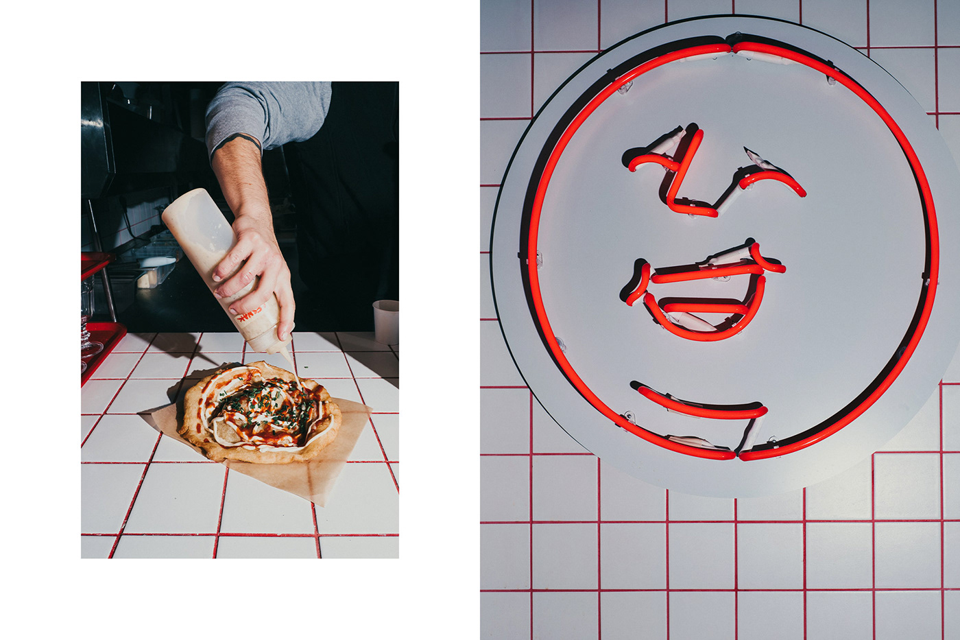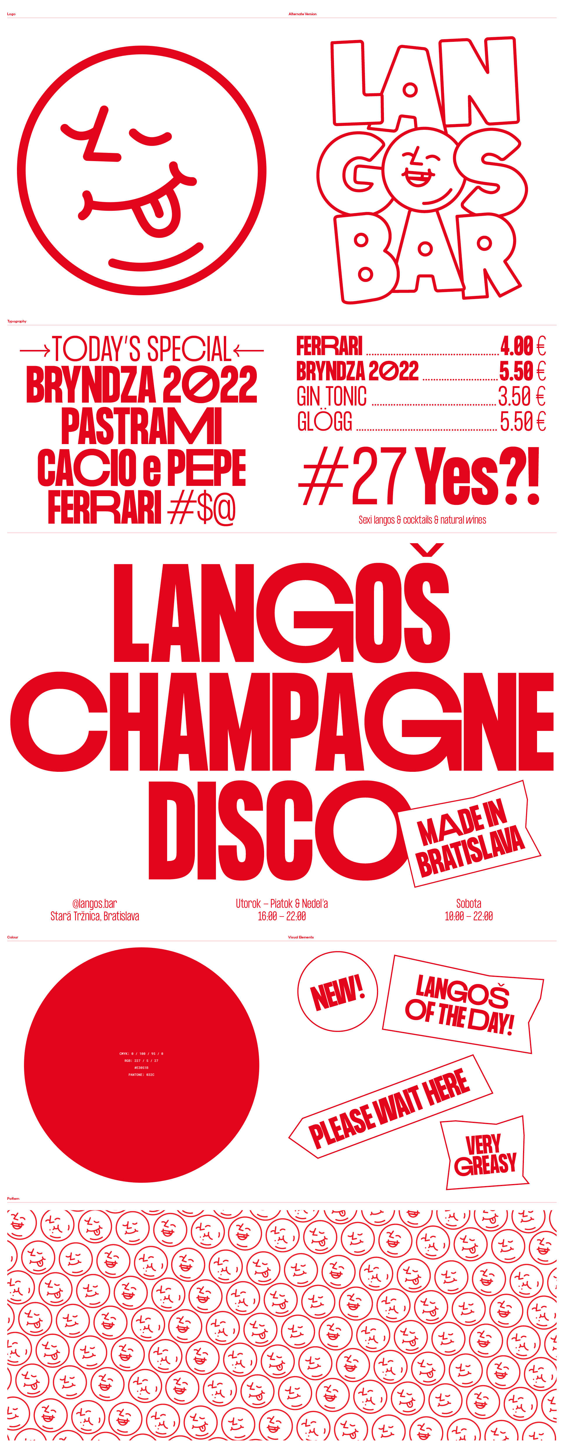 我們的方法是創(chuàng)造一個(gè)品牌標(biāo)志設(shè)計(jì)上強(qiáng)烈而大膽的身份,可以重新解釋這個(gè)現(xiàn)代概念,但同時(shí)保持概念的特征真實(shí)且易于理解。 我們想表達(dá)吃lango?帶來的樂趣。我們與藝術(shù)家Tomá? Rybár aka Sicknico合作創(chuàng)造了一個(gè)可以代表這些情緒的角色。我們創(chuàng)造了一張又肥又快樂的臉(老實(shí)說——lango?不是最健康的食物之一,但可以肯定它是最令人滿意的食物之一)。這張臉提供了非常模塊化的選項(xiàng),可以表達(dá)不同的情緒。最后,我們決定只使用logo的面部版本,因?yàn)樗取發(fā)ogotype”版本具有更強(qiáng)的表達(dá)力。 我們想讓調(diào)色板保持非常簡(jiǎn)單,唯一允許使用的顏色是紅色,它可以創(chuàng)造足夠的強(qiáng)調(diào)色。 標(biāo)志的模塊化也反映在排版中。我們選擇具有不同字形變化的字體,使我們能夠更靈活地處理文本。