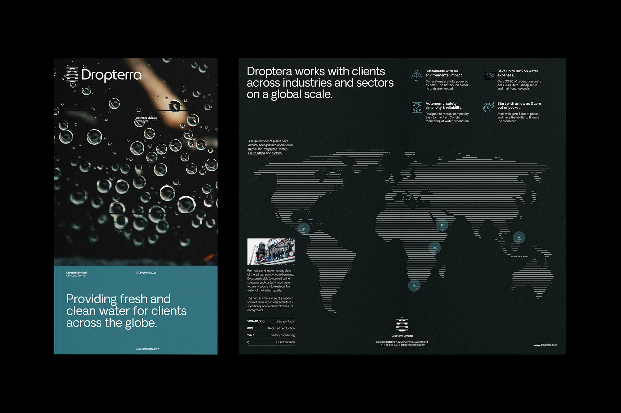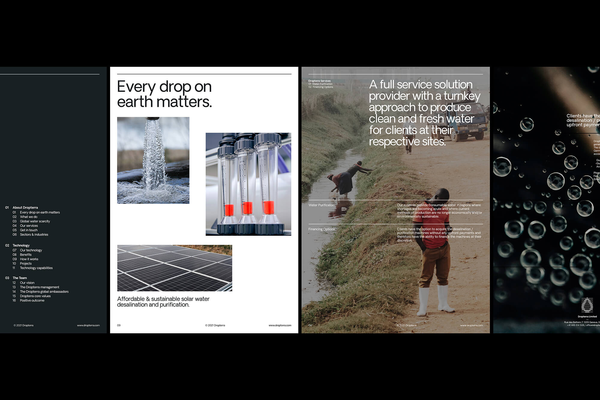 Dropterra Limited – 一家新興公司的LOGO設(shè)計(jì),將革命性的水凈化技術(shù)帶到最需要水的地方。Dropterra Limited 是一家提供全方位服務(wù)的解決方案提供商,采用在短缺變得嚴(yán)重且當(dāng)前生產(chǎn)方法不再具有經(jīng)濟(jì)或環(huán)境可持續(xù)性的地區(qū)生產(chǎn)清潔和淡水。他們銷售一種屢獲殊榮的創(chuàng)新技術(shù),能夠從任何類型的水源提供最高純度的水。凈化水的過程是完全自主的、負(fù)擔(dān)得起的和可持續(xù)的——由太陽驅(qū)動(dòng),對(duì)環(huán)境的影響為零。