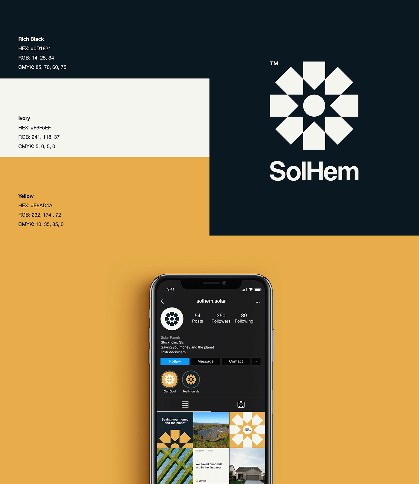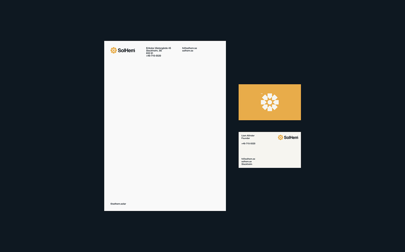 SolHem是一家總部位于瑞典的家用太陽能電池板安裝公司。其目的是創(chuàng)建一個現(xiàn)代、平易近人、溫暖的標識設計。同樣重要的是,該標志反映了該公司的所作所為及其減少溫室氣體排放的愿景。標識本身是太陽和房屋的幾何表示。這也可以解釋為地球接收陽光。logomark的靈活性使其在數(shù)字和印刷領域具有極強的凝聚力。