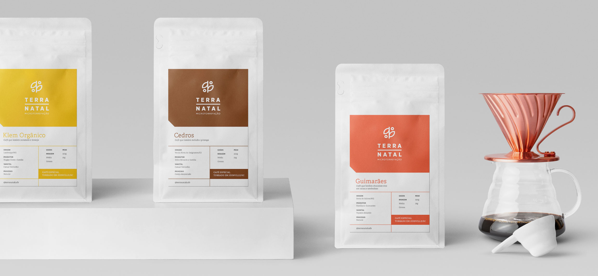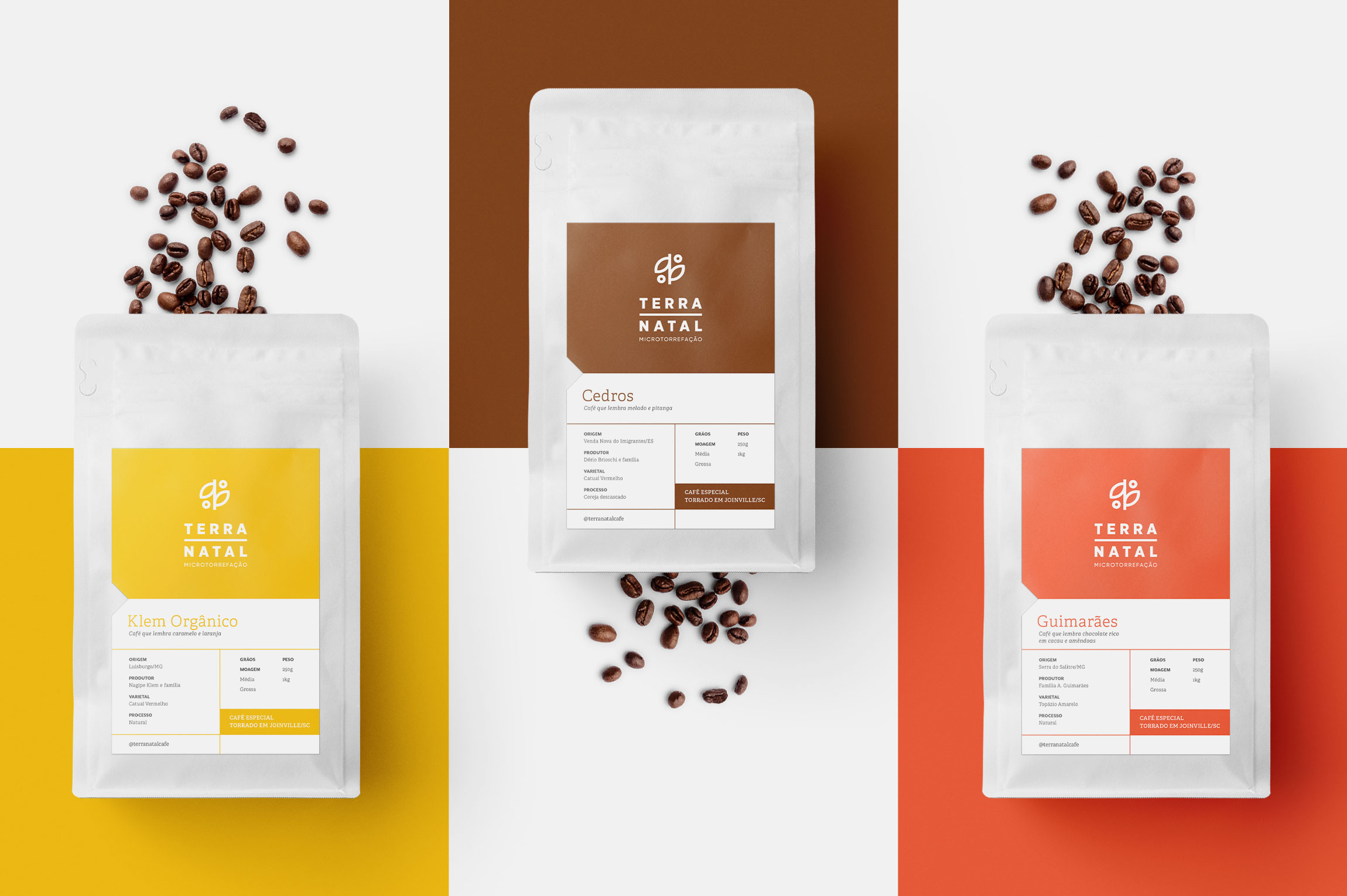 Terra Natal Coffee Roasters 特殊咖啡的包裝設(shè)計項目專注于對品牌產(chǎn)生更直接的視覺識別,對產(chǎn)品線進行分類,向消費者傳達感官特征并優(yōu)化生產(chǎn)流程。