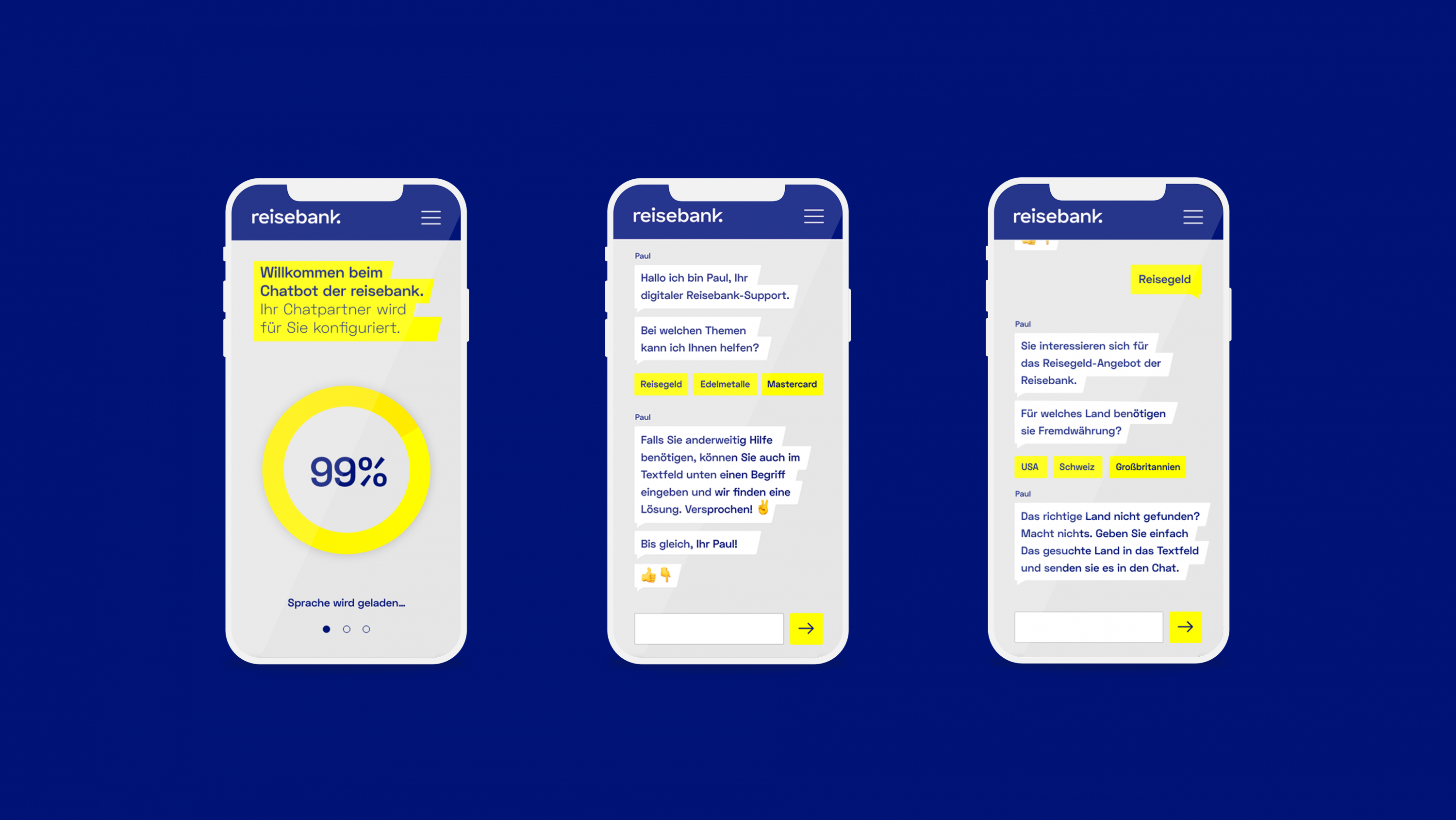 高可訪問性、明確的性能承諾和易于理解的差異化產(chǎn)品是 Reisebank.de 網(wǎng)站重新設(shè)計的重點(diǎn),作為品牌的中央交流平臺和在線商店。不同的目標(biāo)群體可以快速輕松地在網(wǎng)站上找到自己的方式。兌換旅行錢、計算貨幣、購買貴金屬、發(fā)現(xiàn)黃金儲蓄計劃、體驗(yàn)產(chǎn)品或只是尋找分支機(jī)構(gòu)——只需點(diǎn)擊幾下,所有這些都以引人注目且易于理解的方式進(jìn)行解釋和分類。該網(wǎng)站是廣泛數(shù)字品牌體驗(yàn)的起點(diǎn)——從數(shù)字接觸點(diǎn)(例如數(shù)字分支指南)到新設(shè)計和設(shè)計的品牌應(yīng)用程序。