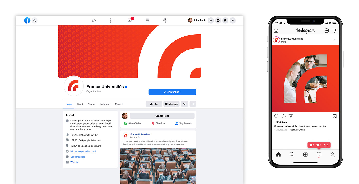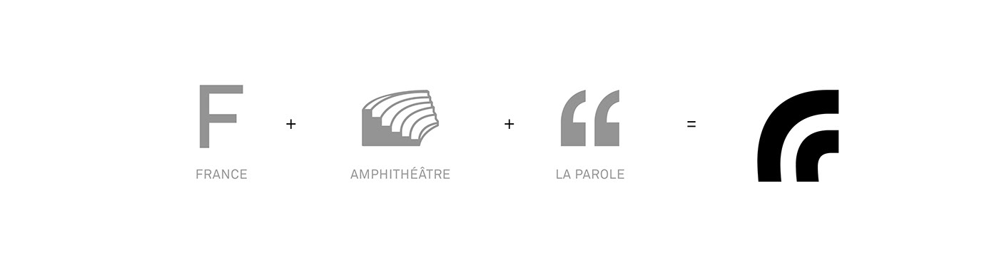為了實(shí)現(xiàn)這一目標(biāo),Graphéine設(shè)計(jì)了一個(gè)標(biāo)志性的monogram。這個(gè)字母組合體現(xiàn)了法國大學(xué),它將代表法國領(lǐng)土的字母“F”的形狀與一所大學(xué)圓形劇場長椅的抽象相結(jié)合。因此,這個(gè)標(biāo)志使1995年創(chuàng)立的第一個(gè)標(biāo)志的象征意義現(xiàn)代化并重新煥發(fā)活力。
