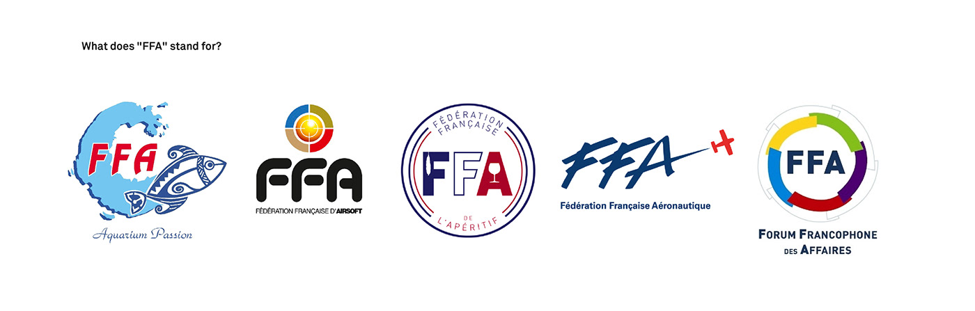 消除與其他現(xiàn)有FFA首字母縮略詞的歧義,這些縮略詞與田徑運(yùn)動(dòng)毫無關(guān)系(鋼鐵、航空、保險(xiǎn)等)