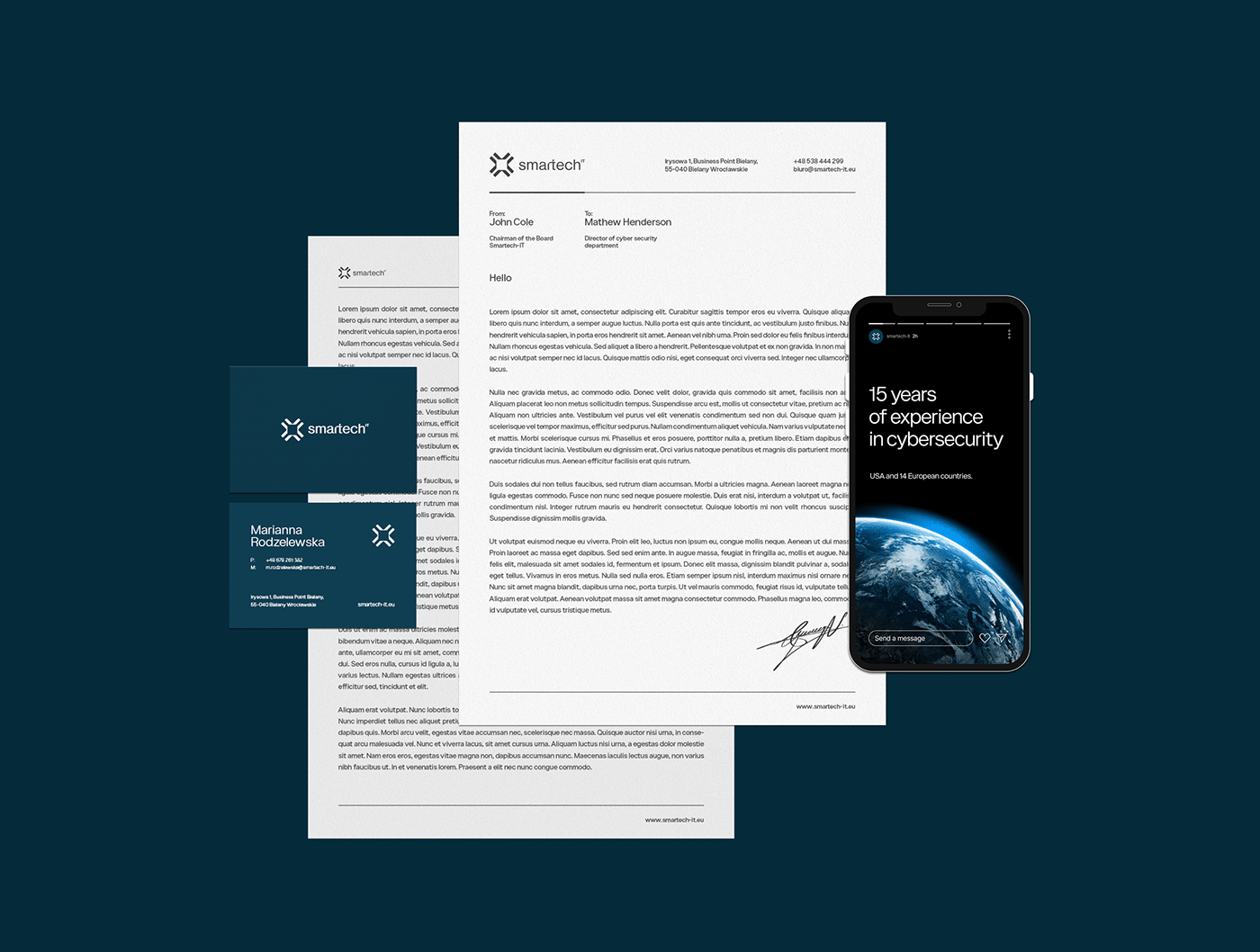 我們的任務(wù)是創(chuàng)建一個(gè)品牌VI設(shè)計(jì),作為一家全球范圍的專業(yè)公司在數(shù)字世界中進(jìn)行交流。我們決定了反映技術(shù)內(nèi)涵的顏色和印章。使用key visual,我們希望將Smartech-it品牌的技術(shù)本質(zhì)與該公司年輕團(tuán)隊(duì)背后的專業(yè)精神和尋找it解決方案的現(xiàn)代性相結(jié)合。