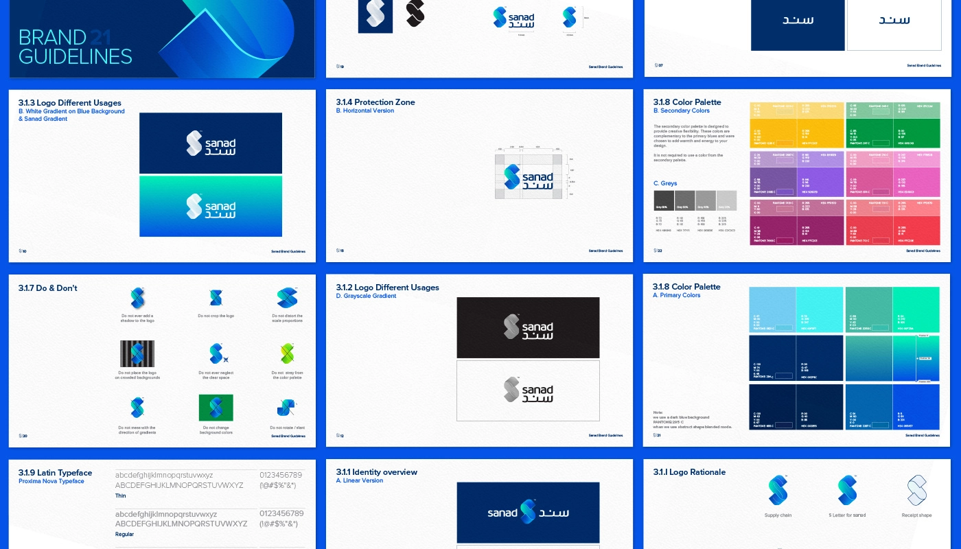 歐米布蘭德,該機(jī)構(gòu)為Sanad開(kāi)發(fā)了一個(gè)富有創(chuàng)意和有意義的VI設(shè)計(jì)和徽標(biāo)概念,其中包含公司商業(yè)模式的關(guān)鍵元素。該標(biāo)志最突出的特征是字母S,它旨在代表連接企業(yè)與快速消費(fèi)品制造商和批發(fā)商的供應(yīng)鏈。同時(shí),S還暗示了沙特阿拉伯貨幣SAR,為設(shè)計(jì)增添了一絲當(dāng)?shù)靥厣?