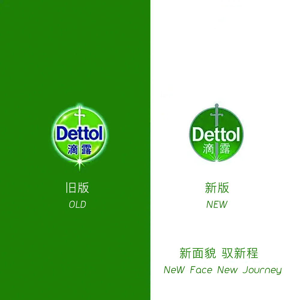 滴露是專注于消毒殺菌的知名消費(fèi)品品牌,深受消費(fèi)者信賴。 你注意到滴露的LOGO的變了嗎?首先,大家熟悉的滴露LOGO主要以“藍(lán)綠”配色為主。 以反光質(zhì)感的水滴元素為背景設(shè)計,中間為 “劍元素”,中英文品牌名稱。 新LOGO依舊保留了原有的設(shè)計元素。 而是在此基礎(chǔ)上進(jìn)行了簡化。 去掉了背景圓框的反光紋理和文字的夜光處理,整體變得平整平整。 并且底部的反射也被簡化為控制在圓圈內(nèi)的發(fā)光設(shè)計。除了紋理的簡化,LOGO的圖形也進(jìn)行了調(diào)整。 劍身整體造型變得更粗更圓潤,英文品牌名稱“Dettol”中的“tt”字體也進(jìn)行了銳利的斜角處理。 劍元素也切割成字母“t”的設(shè)計,讓文字和圖形更具交互性。 不過,這并不給人一種劍斷的感覺。最明顯的變化就是品牌顏色進(jìn)行了大調(diào)整! 原本明亮的藍(lán)綠色配色變成了更深的“綠灰色”。去掉藍(lán)色之后,滴露的LOGO更加注重綠色的展示。 而深綠色是品牌想要表達(dá)活力和穩(wěn)定的顏色。此外,銀灰色的劍元素通過保留品牌標(biāo)志性符號,在視覺上變得更加穩(wěn)重。 整體來看,德路的新LOGO變得簡潔扁平,更適合網(wǎng)絡(luò)媒體傳播材料的設(shè)計。 它在增強(qiáng)可讀性的同時變得更加年輕。用于產(chǎn)品包裝時,簡潔的設(shè)計和色彩搭配更加高級。所以,德路這次對新LOGO進(jìn)行扁平化設(shè)計,很大程度上是想搶占色覺上的優(yōu)勢。 畢竟說起藍(lán)色,就想到了藍(lán)月亮,而滴露將LOGO中的藍(lán)色去掉,主打綠色,大概是為了打造“綠色”的品牌形象。 此外,它也順應(yīng)了扁平化設(shè)計的潮流,順應(yīng)了現(xiàn)代人對極簡美學(xué)的追求。